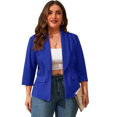 Women's Plus Size Blazer Open Front 3/4 Sleeve Cardigan Work Suit Casual Office Jacket