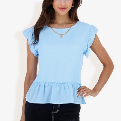 Anna-Kaci Women's Long Sleeve Blouse with Flounce Cuffs and Ruffle Trim Tie Neck Design