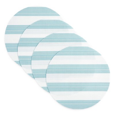Gulches Set of 2 Outdoor French Barstools - Teal Blue & White, Aluminum Frame with PE Rattan (29.5" Seat Height)
