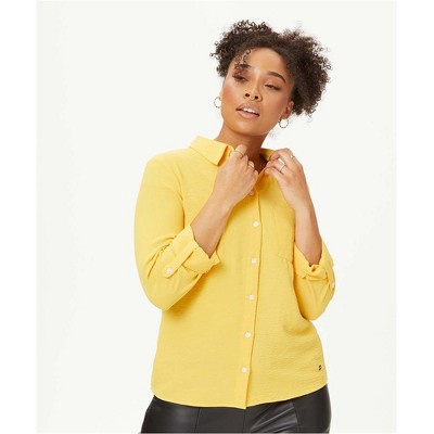 - yellow button down shirt