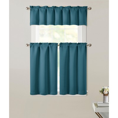 Kate Aurora 3 Piece Room Darkening Rod Pocket Cafe Kitchen Curtain Tier & Valance Set