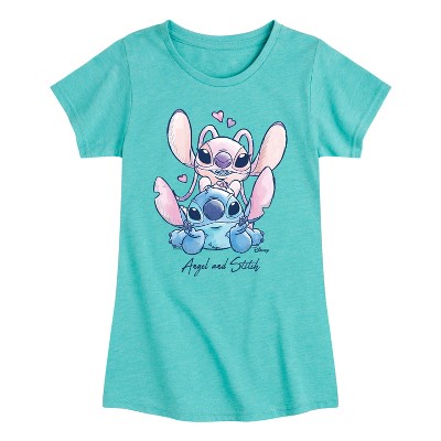 Girls' - Lilo & Stitch - Angel and Stitch Fitted Short Sleeve Graphic T-Shirt
