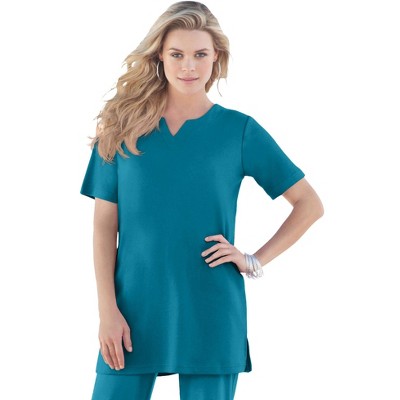 Roaman's Plus Size Soft Knit Tunic With Notch Neckline