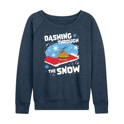 Women's - SpongeBob SquarePants - Dashing Through The Snow Lightweight French Terry Wide Neck Long Sleeve Graphic Shirt