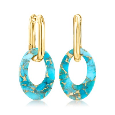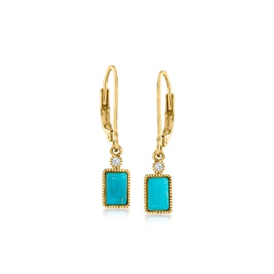 Ross-Simons Turquoise Drop Earrings in 18kt Gold Over Sterling