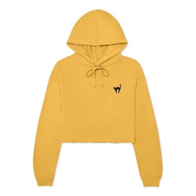 Dalix Black Cat Embroidered Fleece Cropped Hoodie Cold Fall Winter Women in Heather Mustard 2XL XX-Large
