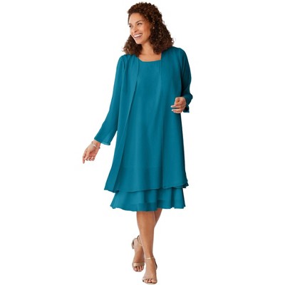 Jessica London Stretch Knit Three-Quarter Sleeve T-Shirt Dress