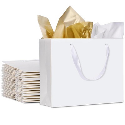 Aoibox 12 Pack Medium White Paper Gift Bags with Ribbon Handles and 24 Sheets Tissue 10.6 x 3.5 x 8.3 Inch for Weddings Parties Holidays