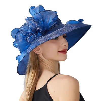 Anna-Kaci Women's Wide Brim Organza Dress Hat with Sheer Ribbon Floral Design for Formal Events and Sun Protection