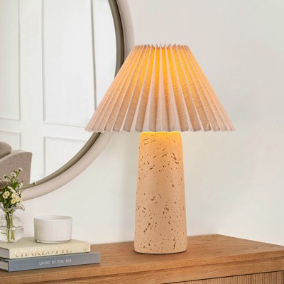 LLHZSY Beige Fabric Shade Table Lamp with Cylindrical Plaster Base, Modern Bedside Desk Lamp for Bedroom Living Room