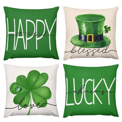 St Patricks Day Pillow Covers Set of 4,Shamrock Clover Hat Lucky Charm Decorations Holiday Farmhouse Spring Pillow Case Decor 18x18 Iniches