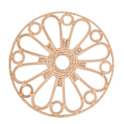 Saro Lifestyle Rattan Round Placemats (Set of 4) – Handwoven Open Weave Design for Dining, Entertaining & Everyday Table Styling, 15", Beige