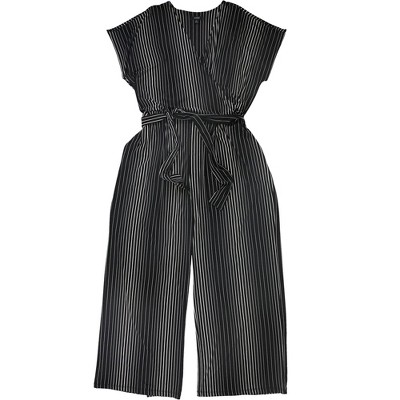 INSPIRE CHIC Women's V Neck Tie Front Casual Sleeveless Wide Leg Jumpsuit