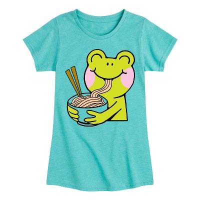 Girls' - Instant Message - Kawaii Frog Eating Ramen Fitted Short Sleeve Graphic T-Shirt