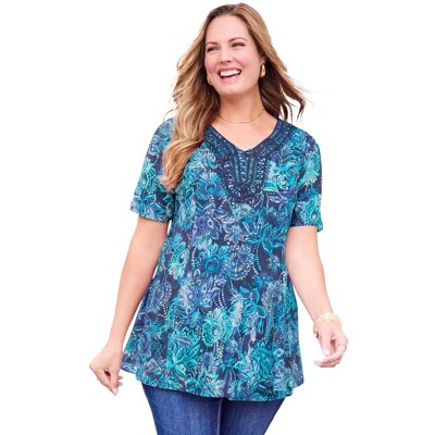 Woman Within Miracle Mesh Tulip Three-Quarter Sleeve Tunic