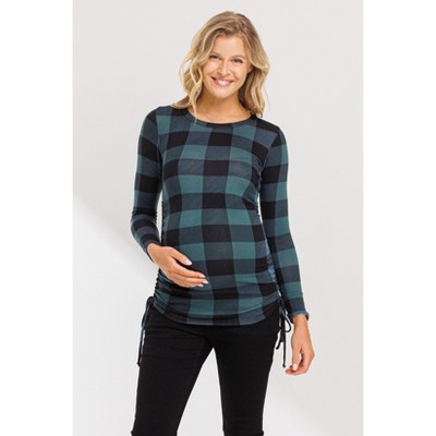 Hello Miz Women's Long Sleeve Crew Neck Side Ruching Maternity Knit Top