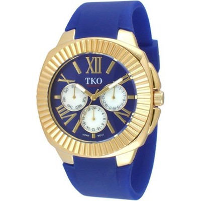 TKO Orlogi Women's Gold-Tone Blue Multi-Function Watch with Soft Silicone Blue Rubber Band