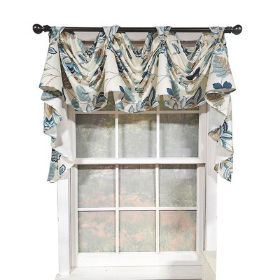 RLF Home Natalia Regal Valance High Quality Window Treatment 3" Rod Pocket 50" x 17" Cyan Blue/White