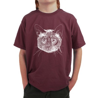 LA Pop Art Boy's Word Art T-shirt - Cat Maroon X Small