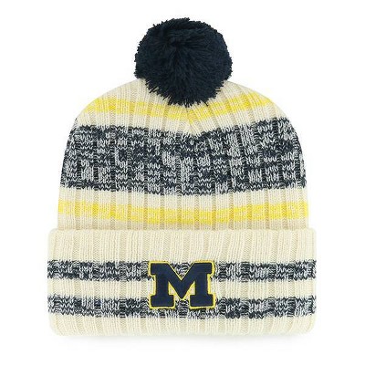 NCAA Michigan Wolverines Cream Knit Pom Beanie: Sports Team Logo Winter Hat