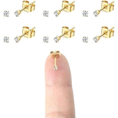 14K Gold Plated 2mm Cubic Zirconia Stud Earrings, 20G Minimalist Cartilage Studs for Women & Men