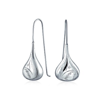 Bling Jewelry Carved Etched Puffed Pear Shaped Rain Drop Teardrop Earrings Fishhook Sterling Silver