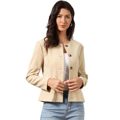 INSPIRE CHIC Women's Elegant Peter Pan Collar Long Sleeve Button Work Peplum Blazer