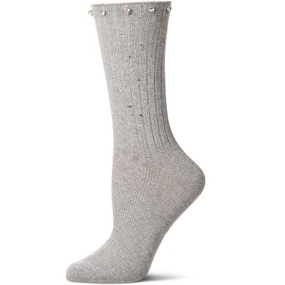 Memoi Women's Solid Soft Flat Knit Cashmere Blend Crew Sock