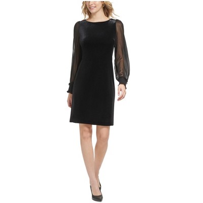 Karl Lagerfeld Womens Sheer Sleeve Velvet Sheath Dress