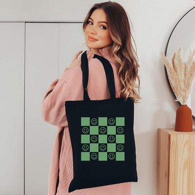 Simply Sage Market Checkeredboard Smiley Canvas Tote - One Size Black - Black