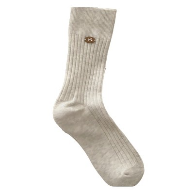 Anna-Kaci Women's 3-Pair Ribbed Crew Socks Soft Stretch Knit with Subtle Embblem Detail Comfortable Everyday Sock Set - Beige