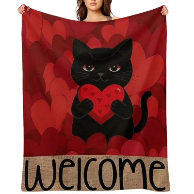 Valentine's Day Black Cat Heart Welcome Throw Blanket - Ultra Soft, Anti-Pilling for Bed & Gifts 40x50 inches