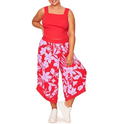 Anna-Kaci Lounge Women's PLus Size 2-Piece Set Satin Lace Trim Sleep Top and Wide Leg Pants with Soft Draping Silhouette