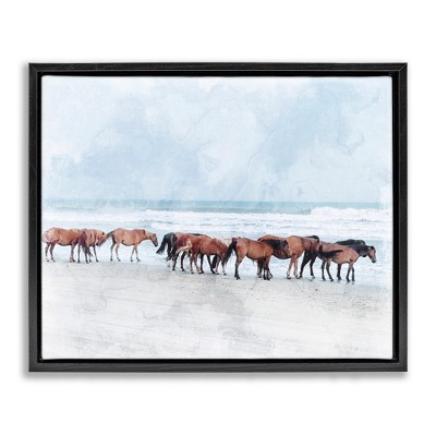 Olivia & May Wood American Flag Living Room Framed Wall Art with Black Frame Red