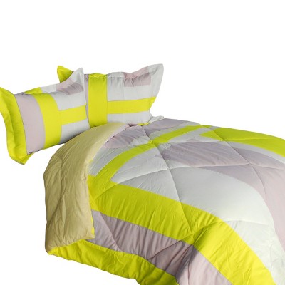 Slickblue Patchwork Comforter & Sham Set, Reversible Down Alt Quilt, Handmade Look, Twin Size Bedding, Pink/Yellow