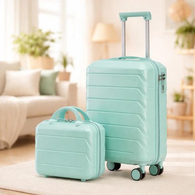 2-Piece Carry On Luggage Set with Cosmetic Case, 20" Lightweight ABS Suitcase with Spinner Wheels & Lock, Stylish Travel Set for Women
