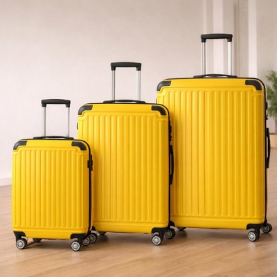 3-Piece Hardside Luggage Set 20" 24" 28", ABS Suitcases with TSA Lock, Spinner Wheels, Expandable, Lightweight Travel Luggage, Lemon Yellow