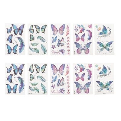 Unique Bargains Halloween Christmas Realistic Butterfly Pattern Fake Tattoos Purple Blue 10 Pcs