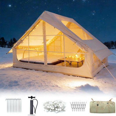Ycxydr Large Inflatable Camping Tent with Stove Jack Instant Waterproof Blow Up Air Glamping Tent with Skylight for Family 4-6 Person 4 Season Outdoor