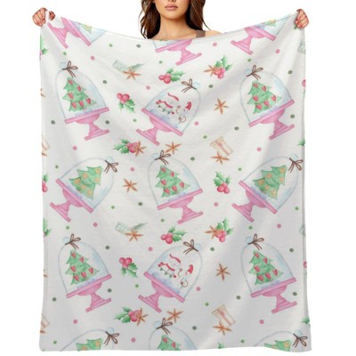FIONECA White Christmas Glass Dome Tree Santa Pattern Soft Fleece Blanket Holiday Decor Cozy Warm Throw 40x50 inches