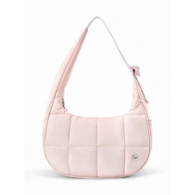 Small Puffer Crescent Shoulder Bag for Women, Nylon Quilted Shoulder Purses, Puffy Handbags with Adjustable Strap