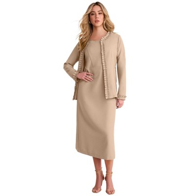 Roaman's Plus Size Long Sleeve Pleated Jacket Dress Set – Elegant 2-Piece Sheath Suit