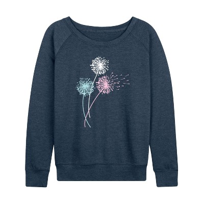 Women's - Instant Message - Pastel Dandelions Lightweight French Terry Wide Neck Long Sleeve Graphic Shirt