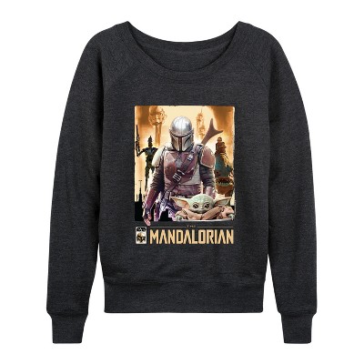 Women's - Star Wars - Mandalorian Collage Lightweight French Terry Wide Neck Long Sleeve Graphic Shirt
