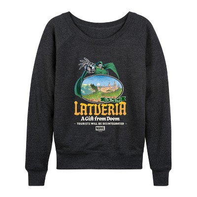 Women's - Fantastic Four - Dr. Doom Latveria Destination Tee Lightweight French Terry Wide Neck Long Sleeve Graphic Shirt