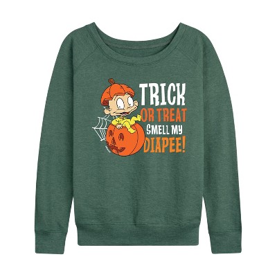 Women's - Rugrats - Dill Trick Or Treat Diapee Lightweight French Terry Wide Neck Long Sleeve Graphic Shirt