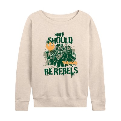 Women's - Star Wars - We Should All Be Rebels Ewoks Lightweight French Terry Wide Neck Long Sleeve Graphic Shirt