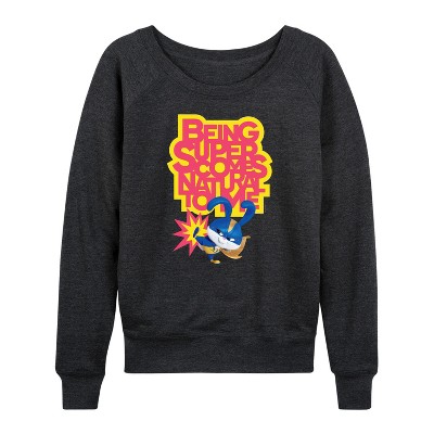 Women's - Pete the Cat - Leo Lightweight French Terry Wide Neck Long Sleeve Graphic Shirt