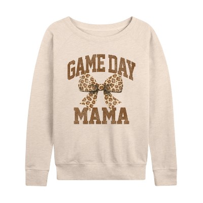 Women's - Instant Message - Game Day Mama Tonal Washed Lightweight French Terry Wide Neck Long Sleeve Graphic Shirt