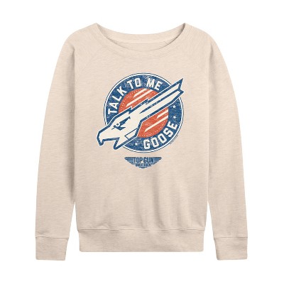 Women's - Top Gun: Maverick - Talk To Me Goose Lightweight French Terry Wide Neck Long Sleeve Graphic Shirt